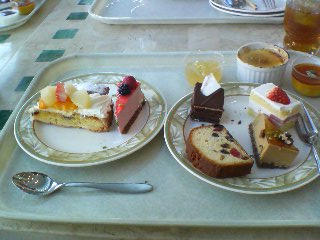 左の皿に抹茶のロールケーキもあったけど平らげた後。
